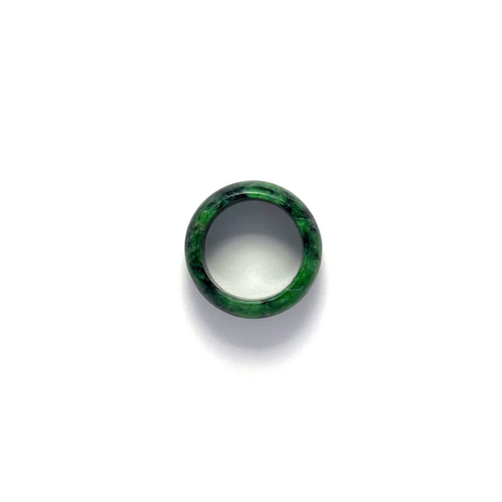 JADE RING - GREEN WITH BLACK COLORED ROUNDED JADEITE JADE RING